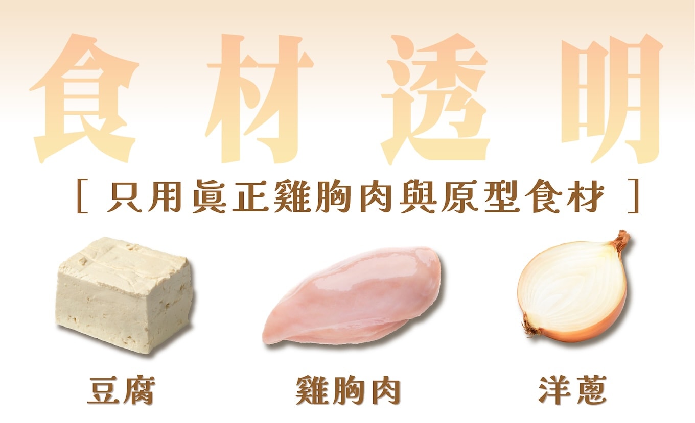 | 純雞胸肉製作 | 雞胸肉+豆腐提升柔嫩口感 | 優質蛋白、低脂更健康 |